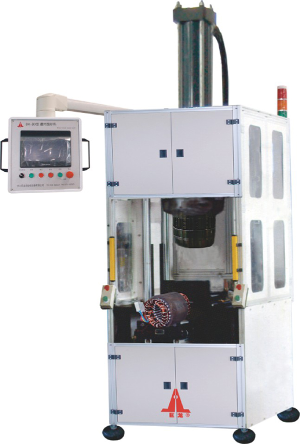 本機(jī)適用于定子線圈綁扎后的最終整形。采用進(jìn)口PLC程控,彩色觸摸屏控制,臥式進(jìn)出工位結(jié)構(gòu)設(shè)計(jì),液壓系統(tǒng)作為源動(dòng)力,模具內(nèi)漲、外包,端部壓形最終成形,保壓時(shí)間可調(diào)。