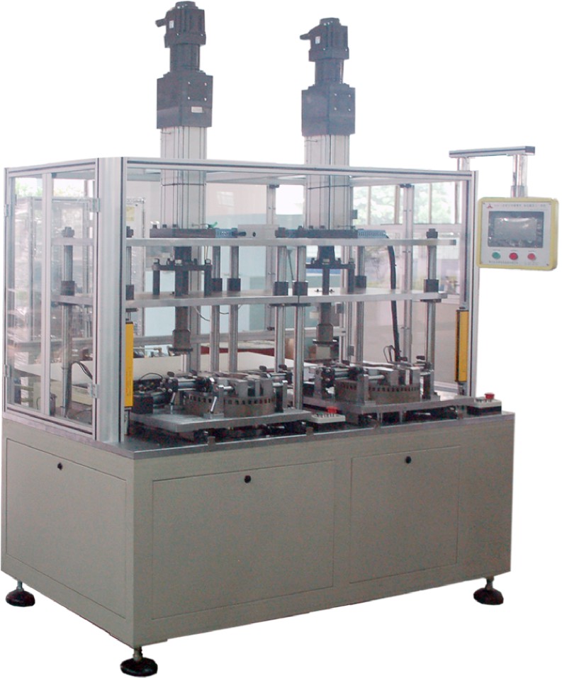 This machine is a special device for shaping the rotor coil of various motors such as automobile motors and automatically pressing the commutator. This machine uses hydraulic cylinders and servo cylinders as the source of motion. One station type is suitable for one kind of product, and two stations type is suitable for two kinds of products. The left and right stations have the same structure and the same working mode. The control circuit consists of Mitsubishi PLC and touch screen display, which can be operated in three ways: automatic, manual and single step.