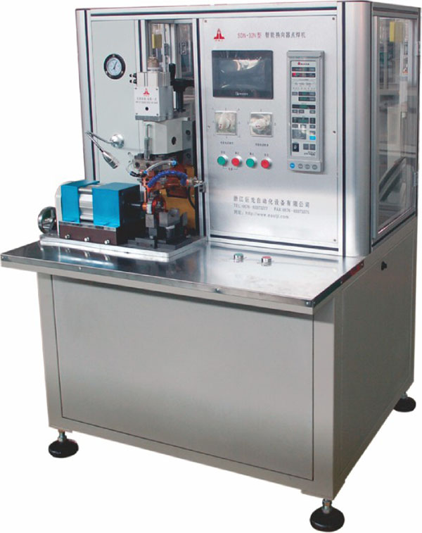 This machine is suitable for automatic welding of the commutator and the rotor wire with hook or slotted motor.Mitsubishi PLC programmable control, color touch screen set parameters, imported Miyaji welding controller joint control, three sections of power, with the current rise, slow down function, secondary constant current or constant power feedback control, welding current stability, Welding current is too small shutdown alarm setting function, and the other can remember 15 different welding specifications, with built-in cooling water tank, imported solenoid valve control welding cylinder, fast and stable, all actions once completed, simple operation, high welding quality.