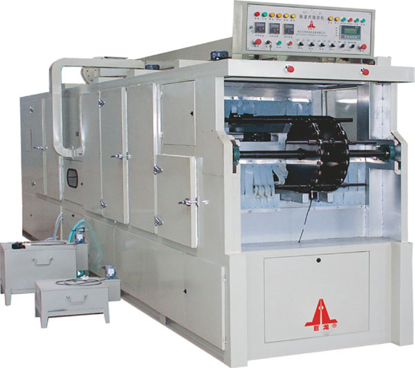 適用于電動(dòng)車(chē)輪鼓電機(jī)線圈預(yù)熱、滾漆,烘干的專(zhuān)用設(shè)備。本機(jī)采用三菱PLC可編程控制,進(jìn)口變頻器調(diào)速,氣動(dòng)與機(jī)械相結(jié)合的結(jié)構(gòu),采用鏈輪旋轉(zhuǎn)運(yùn)動(dòng),使鏈條產(chǎn)生步進(jìn)運(yùn)動(dòng),定位輸送,邊轉(zhuǎn)邊滾,移位準(zhǔn)確,多段數(shù)字控溫,定漆液面定時(shí)定次滾漆,操作簡(jiǎn)單,生產(chǎn)效率高。