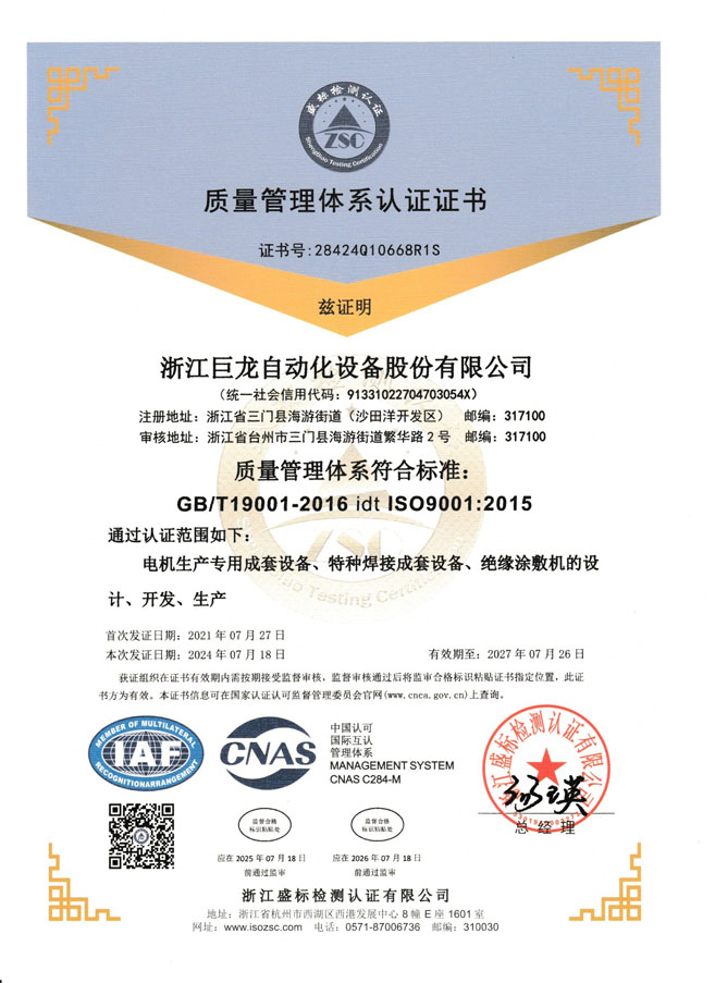 --祝賀巨龍公司審核通過2024年質量體系認證以及2項計算機軟件著作權